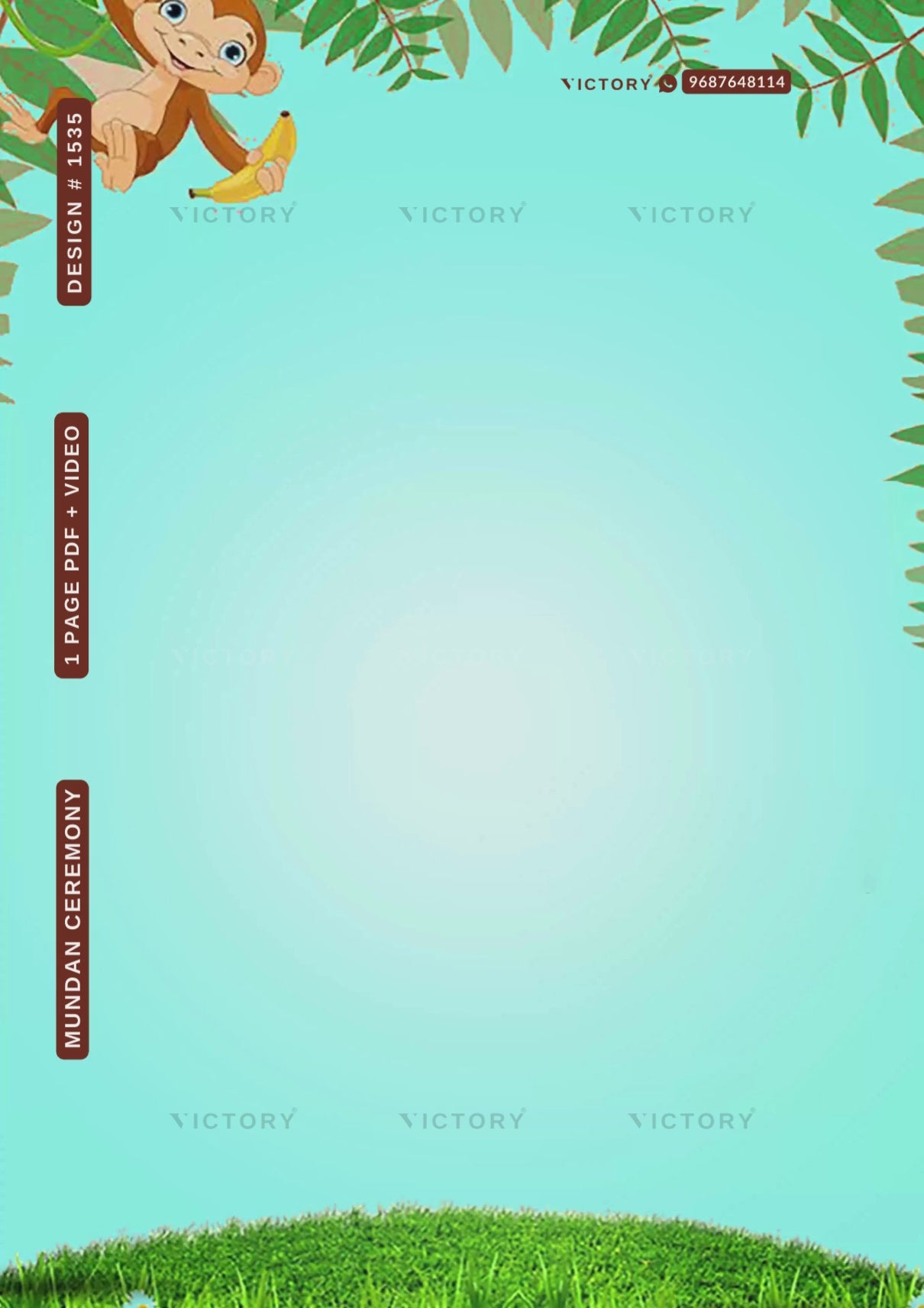 Mundan Ceremony invitation card in english language with green leaves, Chota Bheem, Mickey Mouse, and baby boy images, as cartoon theme design 1535