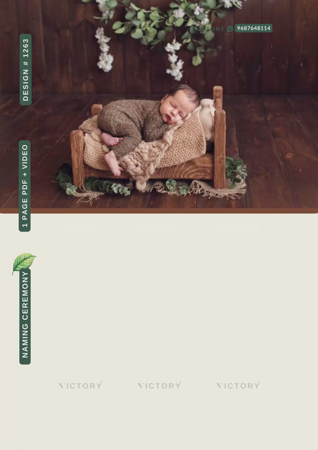 Baby Naming ceremony invitation card in english language with baby photo, leaves, flowers as woodland theme design 1263