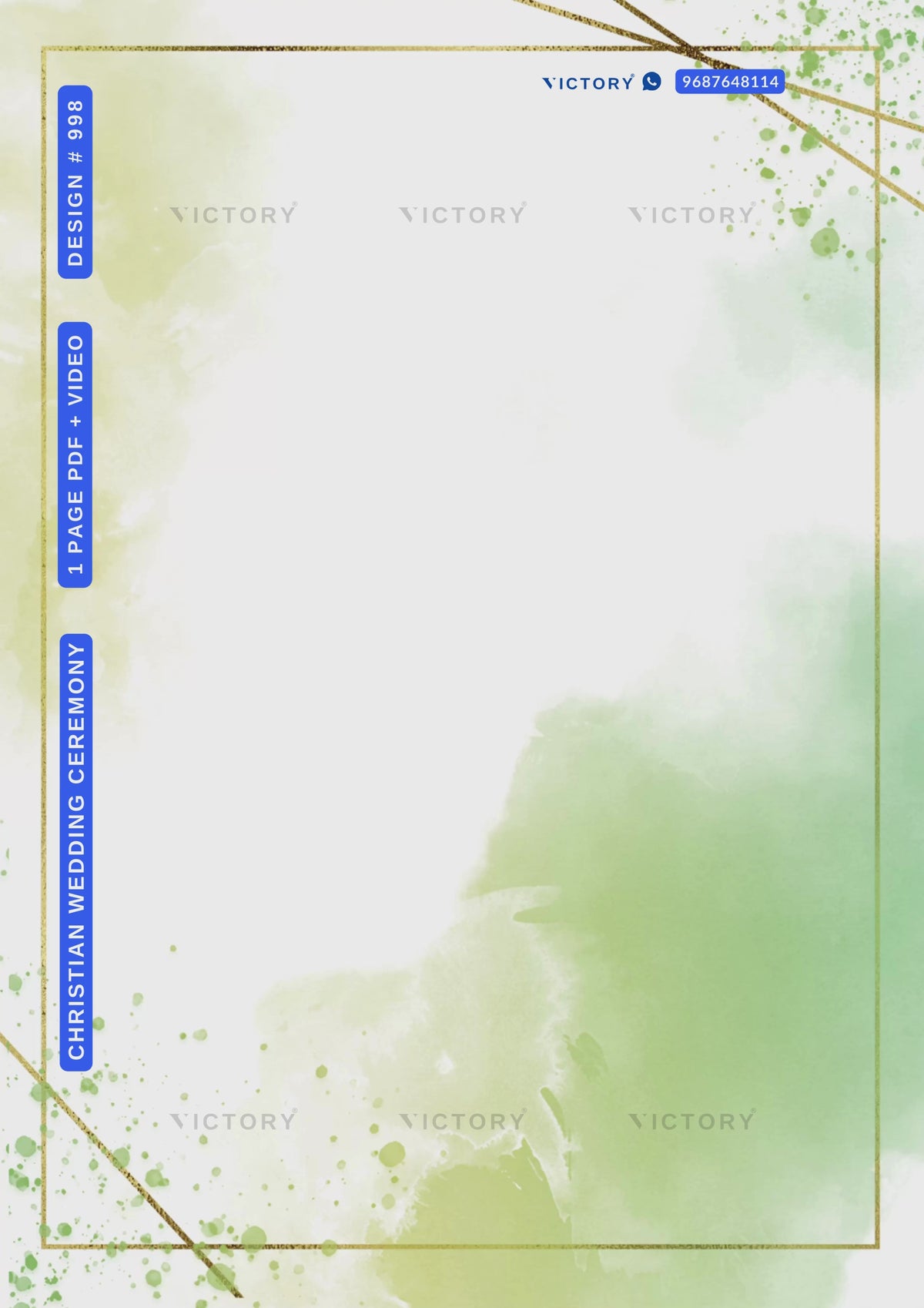 The Minimalistic Theme of the bible verse Christian digital invitation card for a church wedding ceremony in green splash background color. This e-invite card is perfectly suitable for Catholic families and it's available in English language. It includes elements such as green leaves, a golden border, green glitter, golden lines, couple doodle, couple ring.