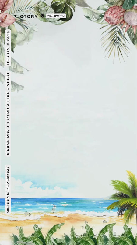 Charming couple caricature invitation card for wedding ceremony of hindu gujarati patel family in english language with Beach theme design 2414