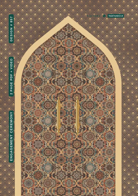 Engagement ceremony invitation card in english language with couple photo as arch frame theme design 857