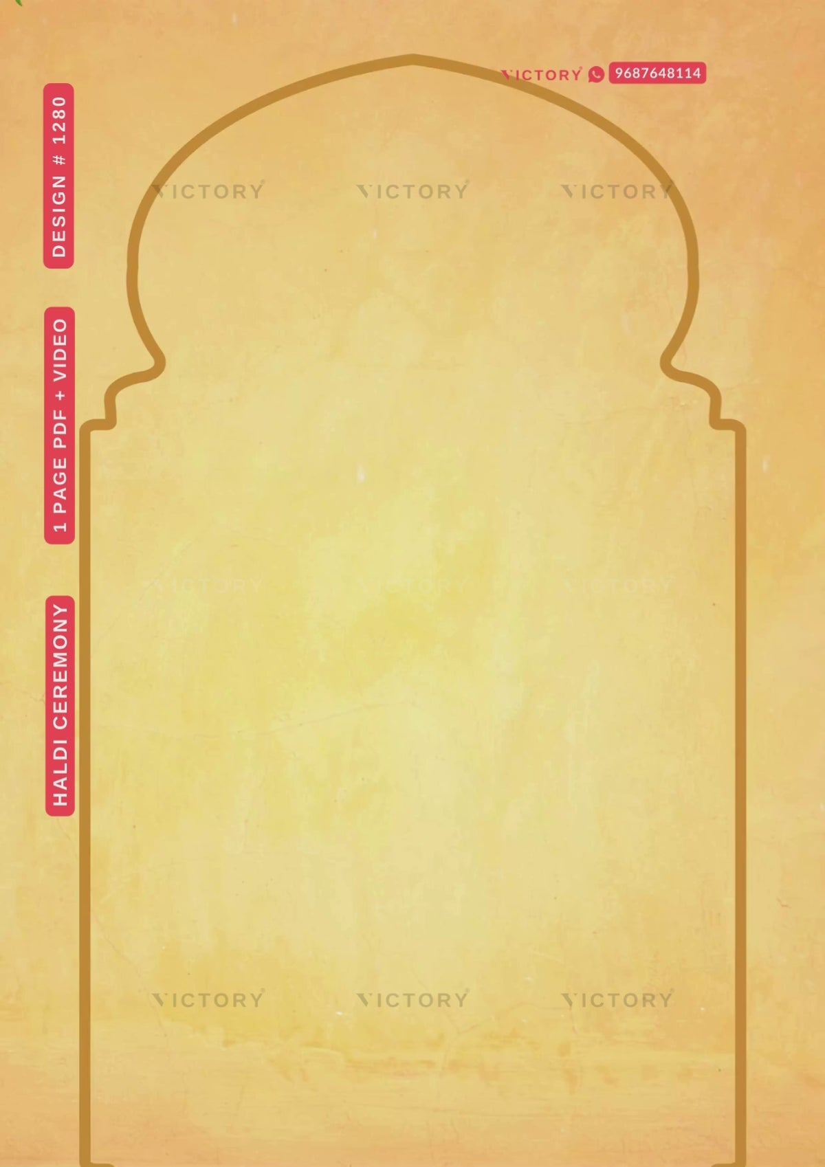 Haldi ceremony invitation card in english language with haldi doodle, marigold garland as arch frame theme design 1280