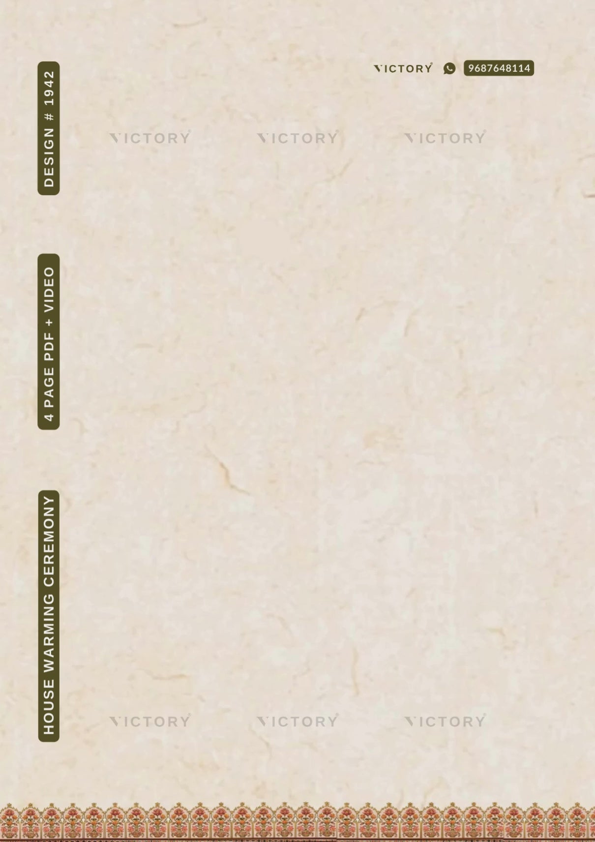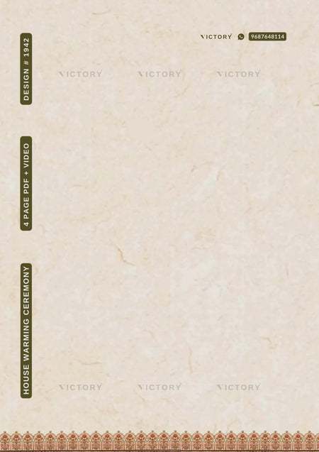 House Warming ceremony invitation card in english language with cow, kalash, banana leaves as floral theme design 1942