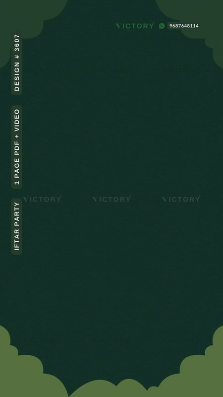 The night view Theme of the Iftar Party digital invitation card in green background color. This Ramadan Iftar e-invite is available in the English language. It includes elements such as Arabic calligraphy, star, moon, masjid, and Muslim family doodle.