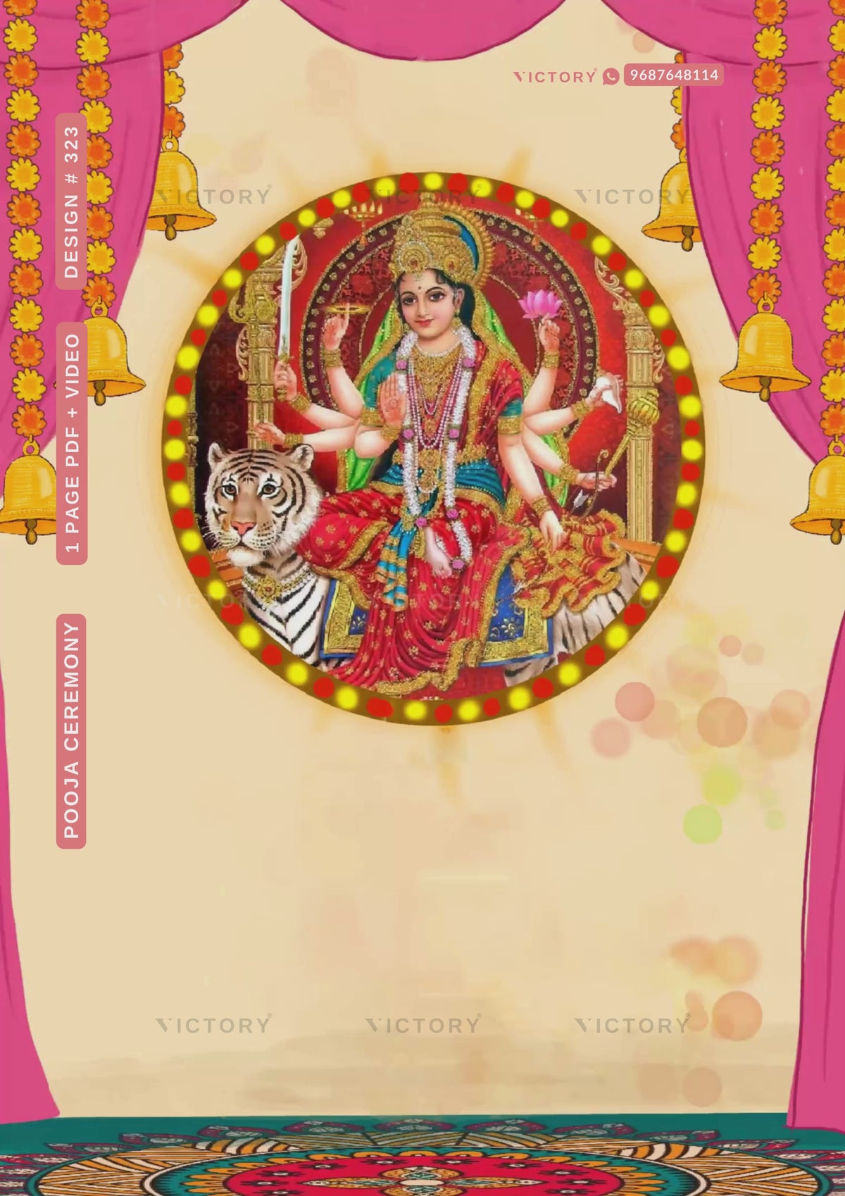 "The traditional curtains paired with Maa Durga’s image gave the card a very graceful and spiritual look. Perfect for our satsang invitation!"