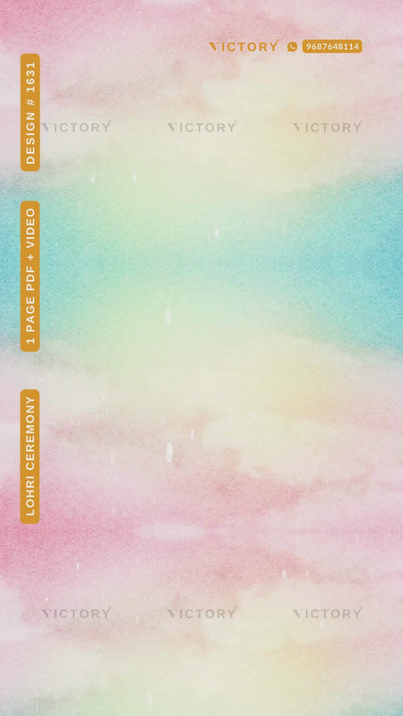 The minimalistic Theme of the Lohri digital invitation card in pink, blue and yellow splash background color. This Lohri festival e-invite is for the Sikh family and it is available in English language. This baby's first Lohri card includes elements such as toran, baby image, golden frame, bonfire, dholki, kite, and glass.