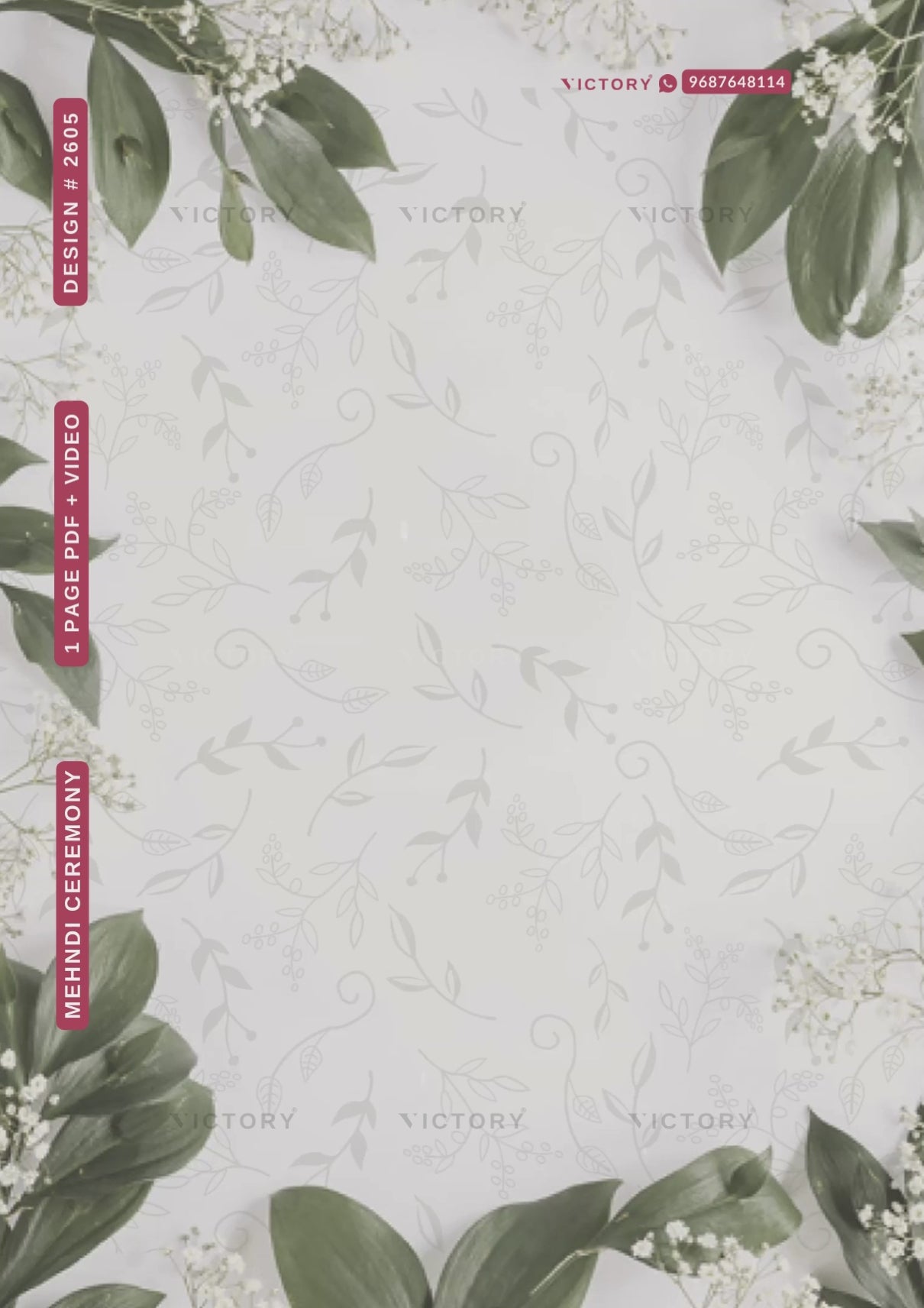 Mehendi ceremony invitation card in english language with flower, leaves as artistic theme design 2605