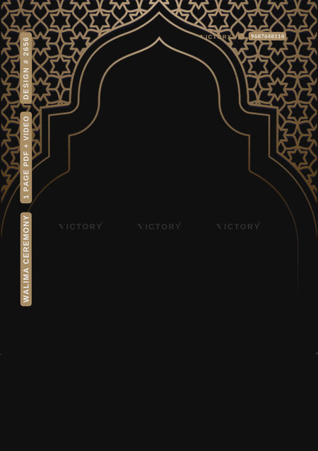 The Arch Theme of the Islamic digital invitation card for the Nikah marriage ceremony is in a Brown background color. This e-invite card is perfectly suitable for Muslim families and it's available in English language. It includes elements such as lanterns, golden arches, golden patterns, and nikah calligraphy.