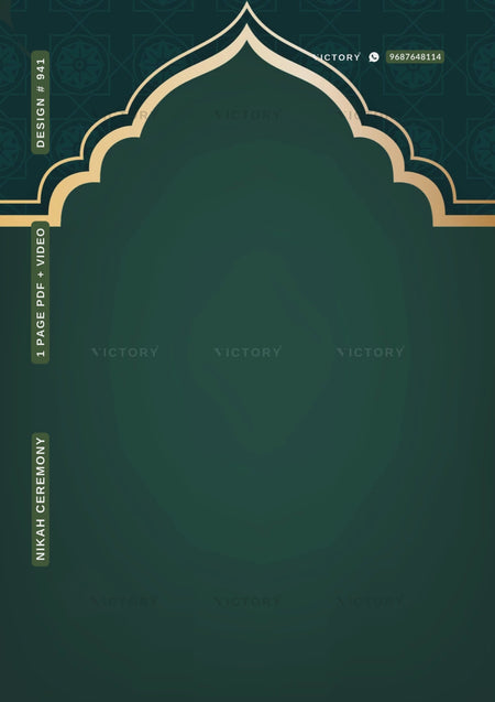 The floral and arch Theme of the Islamic digital invitation card for Nikah marriage ceremony in the green background color. This e-invite card is perfectly suitable for Muslim family and it's available in English language. It includes elements such as arch, flowers, leaves, lantern, couple doodle.