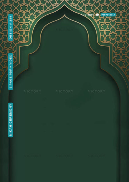Nikah ceremony invitation card of Muslim family in english language with Traditional theme design 284