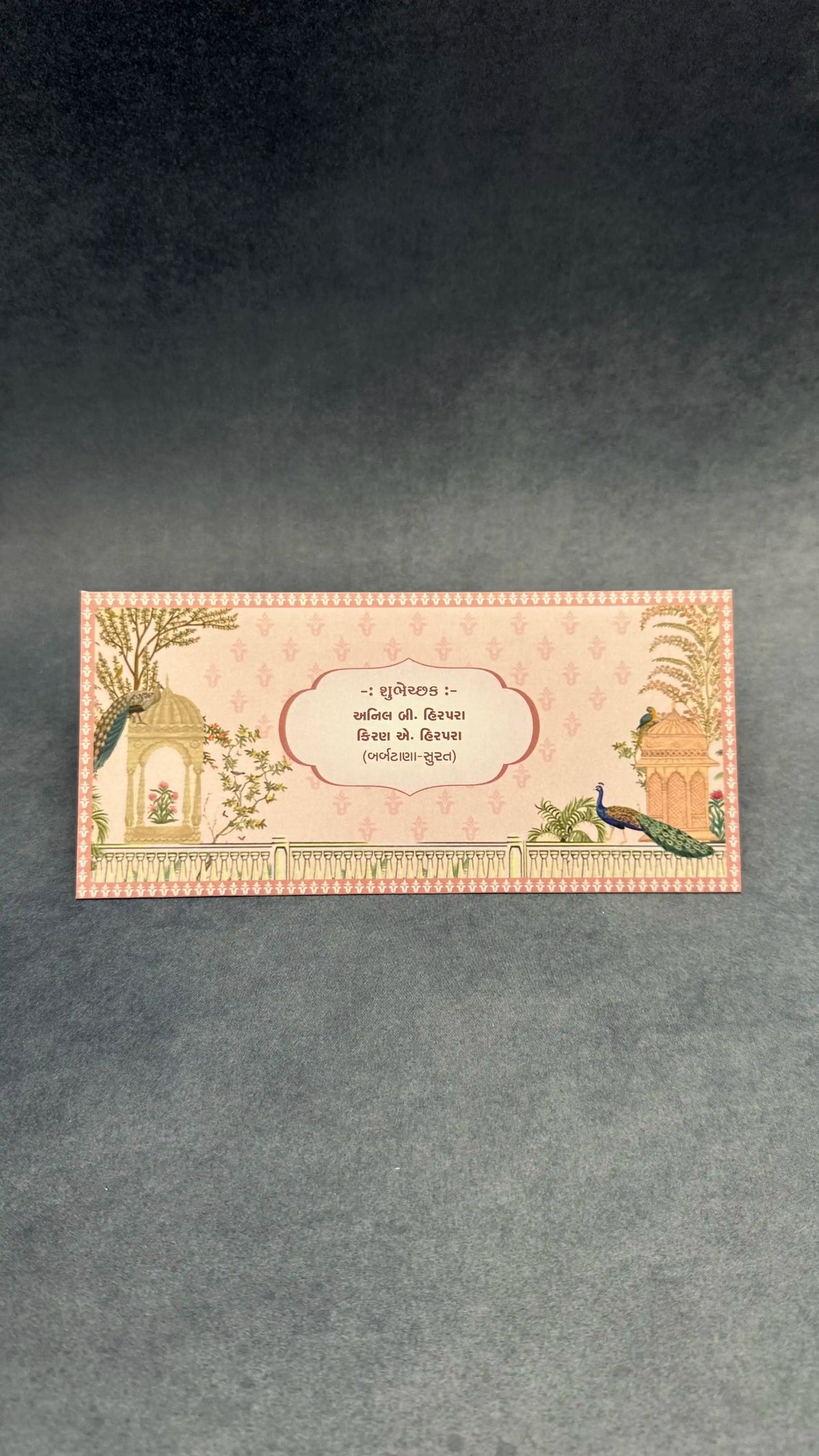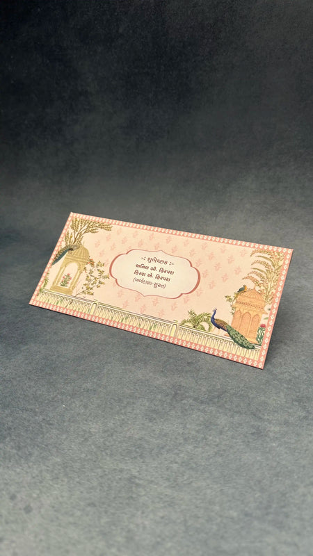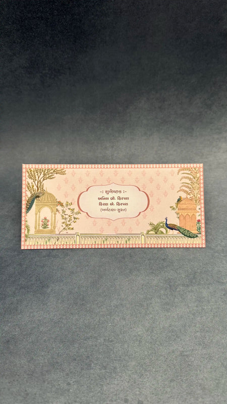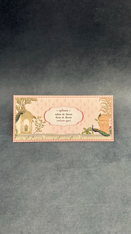 Our Peacock Palace Theme Shagun Money Customised Envelope features royal peacock elements inspired by traditional palace aesthetics, creating a rich and elegant look.