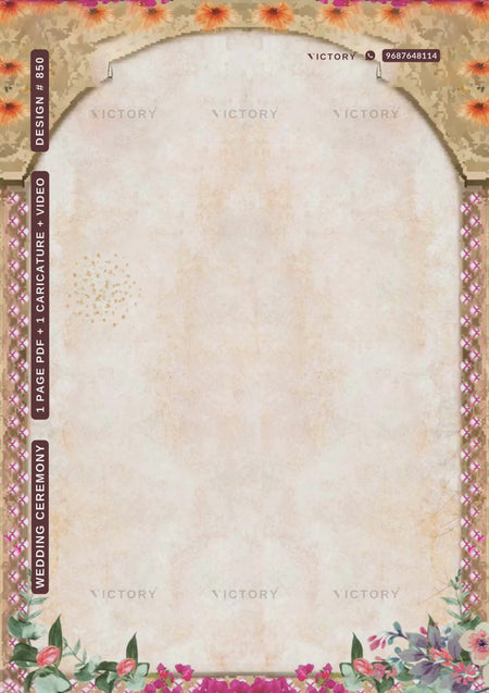 Romantic couple caricature invitation card for wedding ceremony of hindu punjabi sikh family in english language with Arch Artistic flower theme design 850