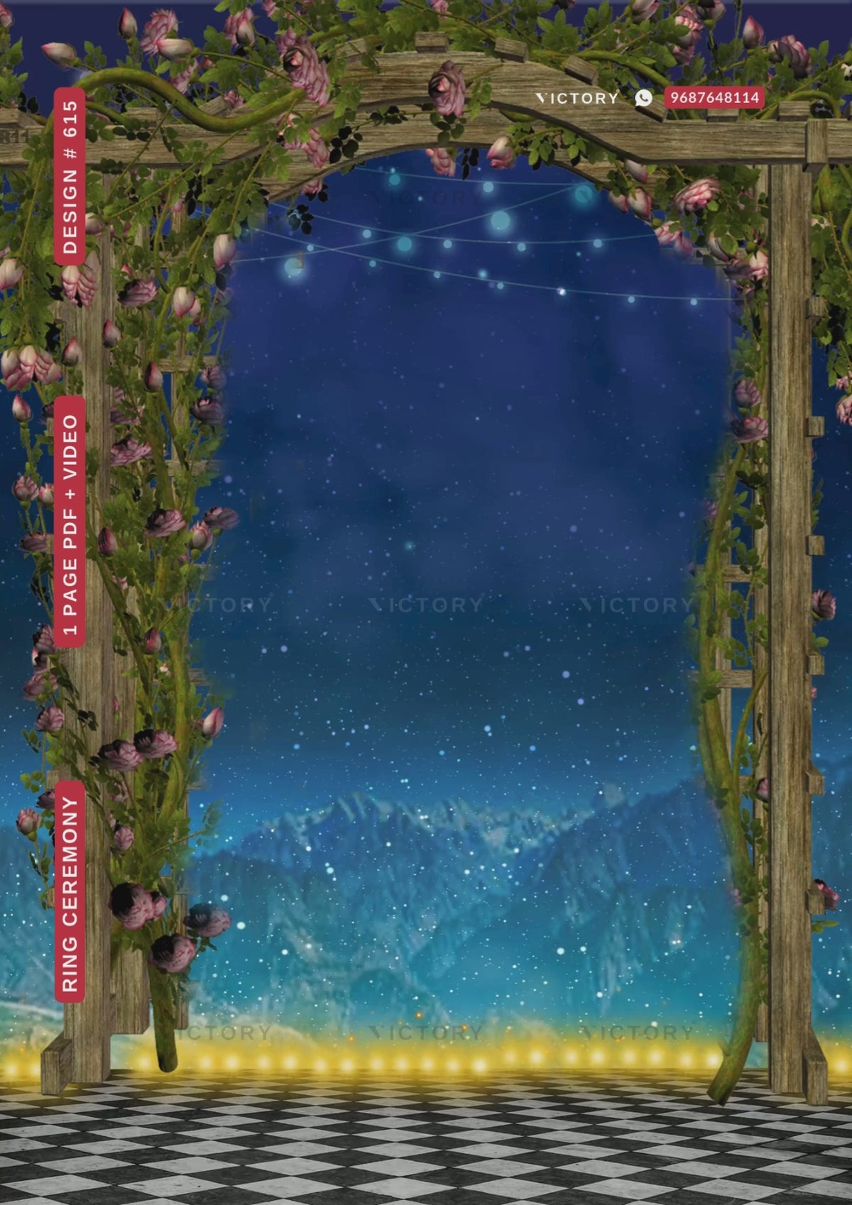Sakharpuda Engagement invitation card in Marathi language with pink flowers, lantern as wooden gate theme design 615