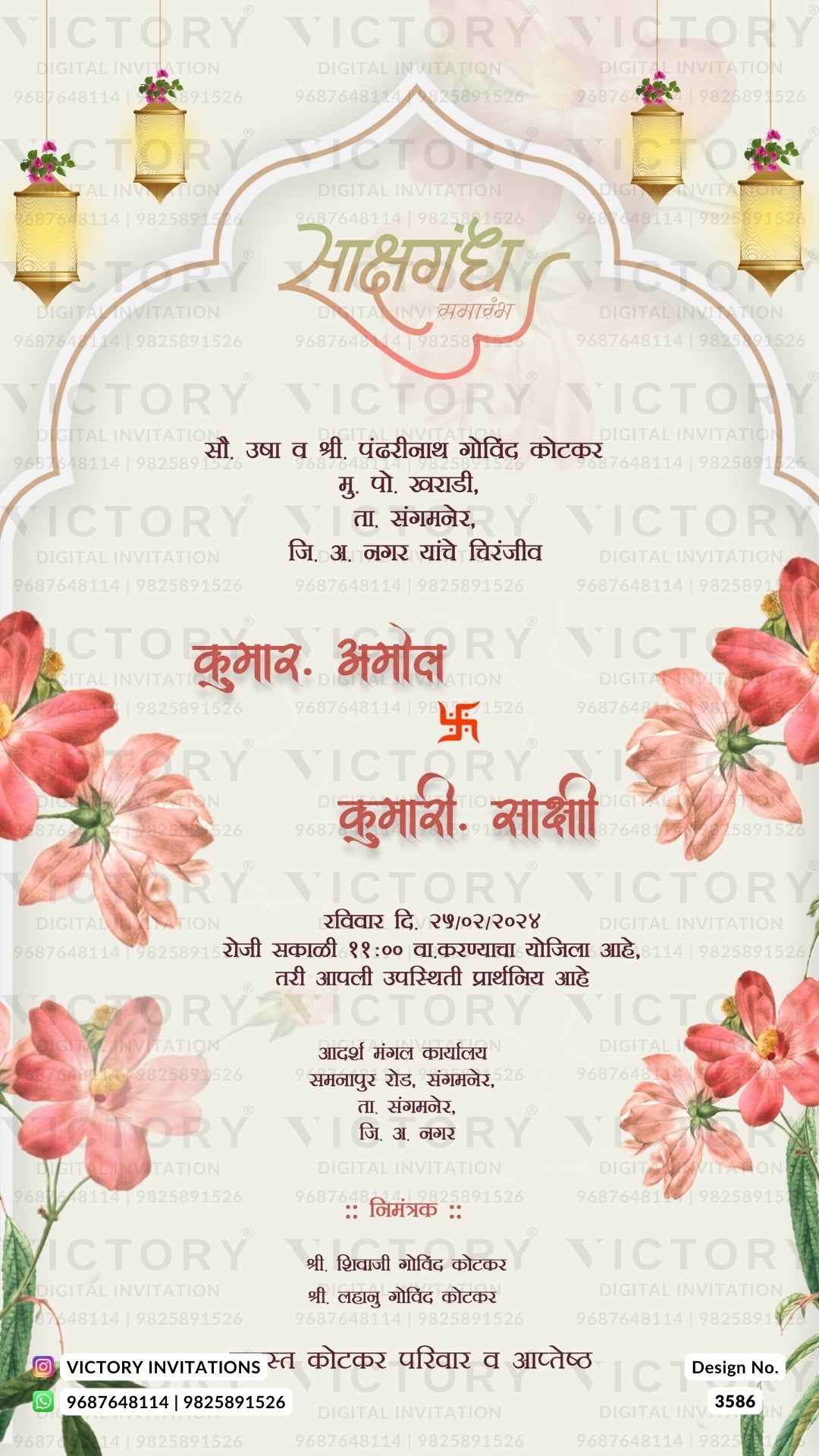 Sakshgandh Engagement invitation card in marathi language with string lights, floral as traditional theme design 3586