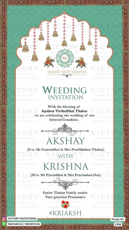 Wedding ceremony invitation card of hindu gujarati leuva family in English language with Arch theme design 1256
