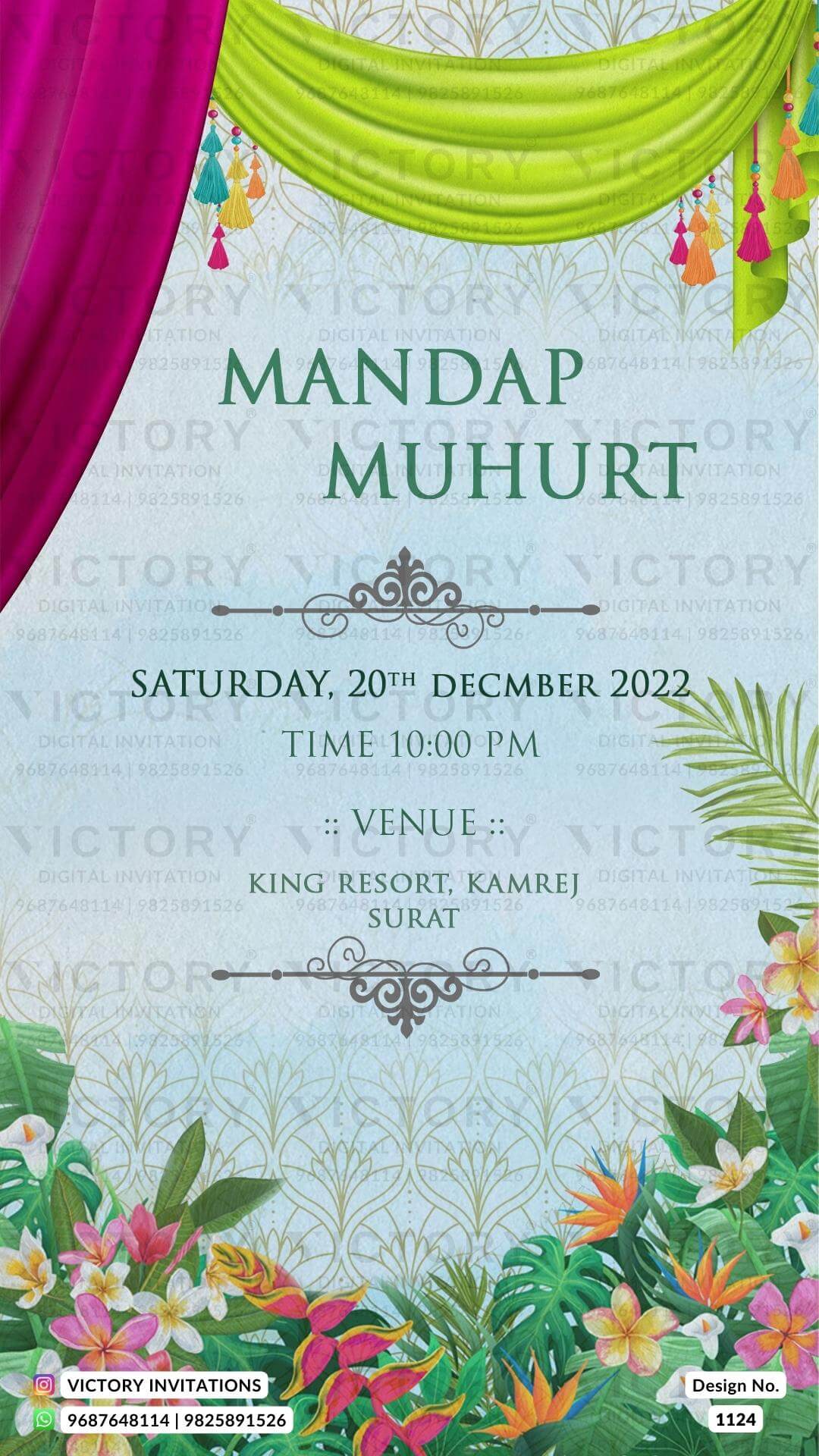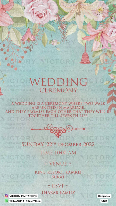 Wedding ceremony invitation card of hindu gujarati patel family in English language with floral theme design 1124