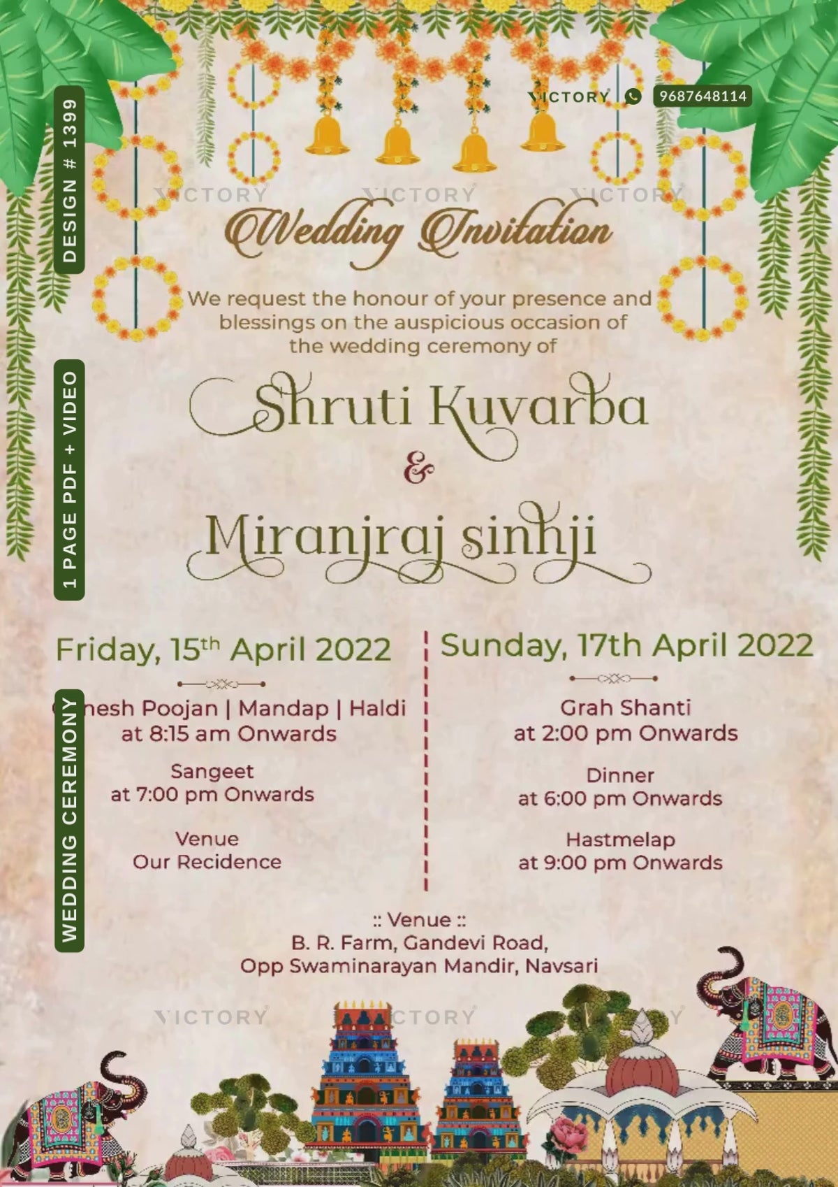 • This is a custom-made digital invitation. After placing your order, kindly WhatsApp your event details to +91 98258 91526.
