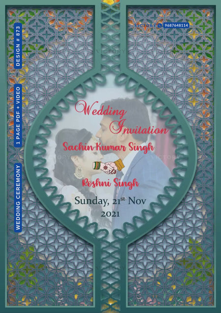Wedding ceremony invitation card of hindu north indian bhojpuri family in English language with couple photo theme design 873