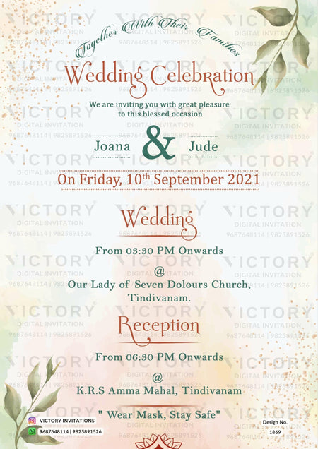 Wedding ceremony invitation card of hindu south indian tamil family in English language with floral theme design 1869
