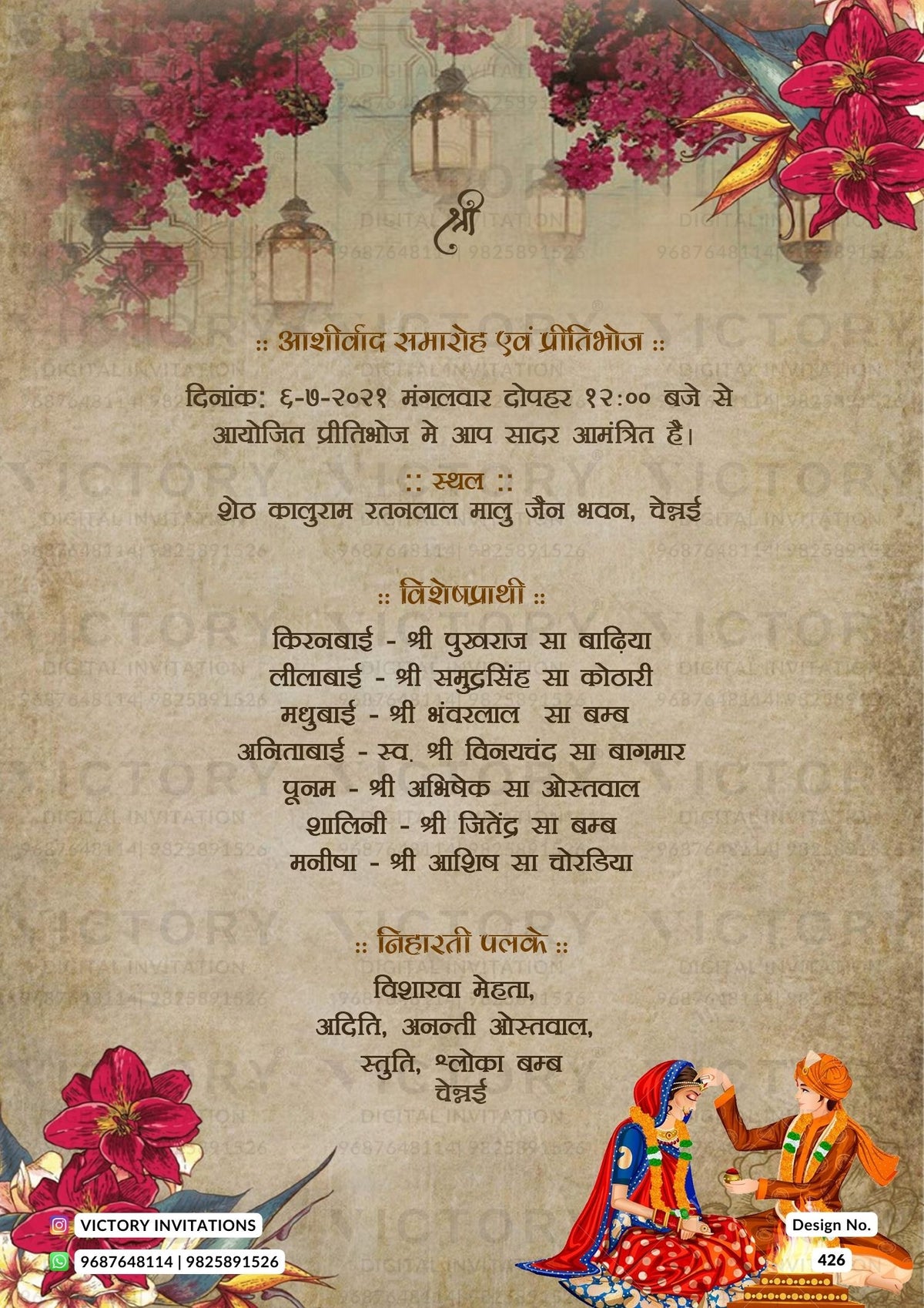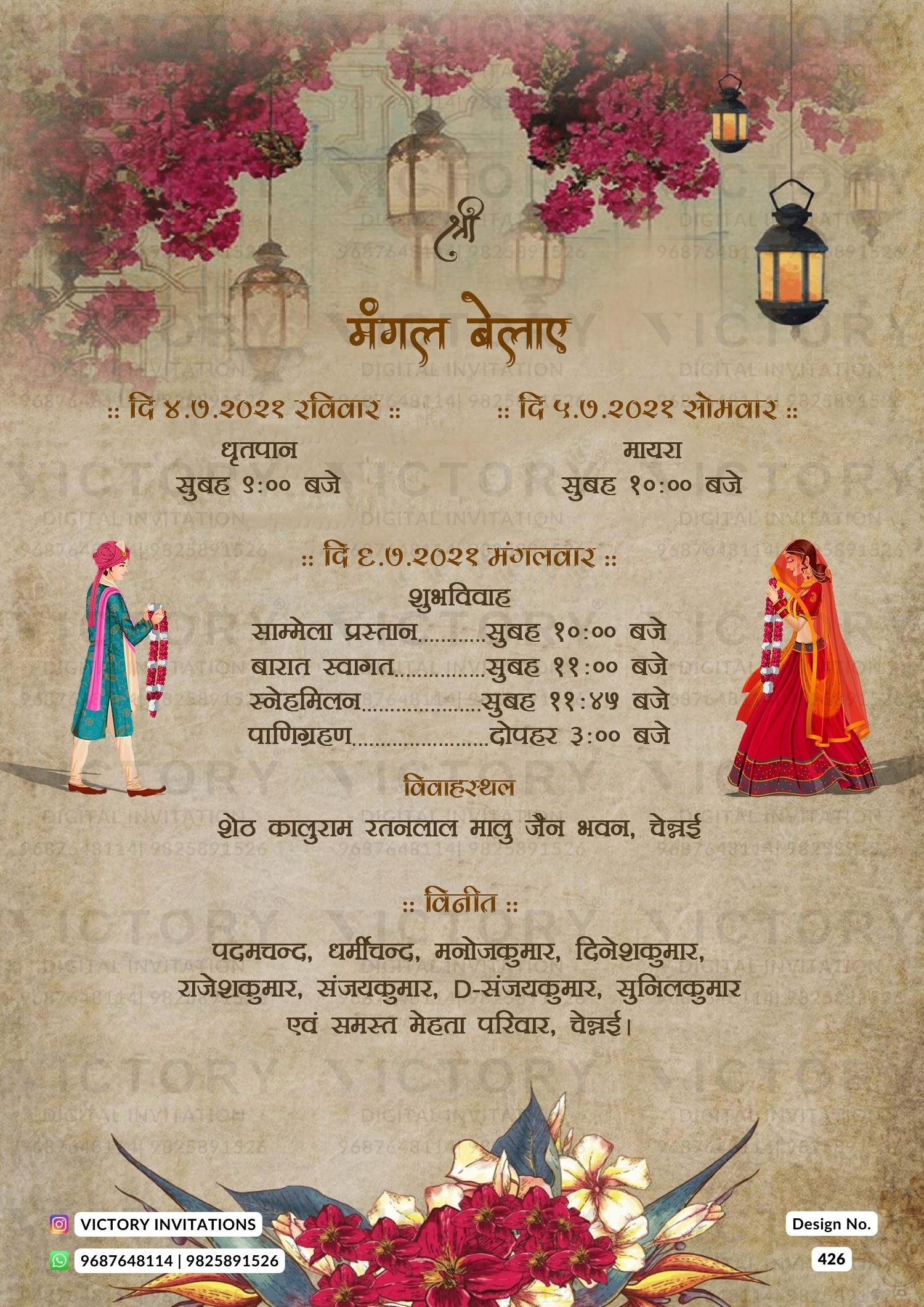 • This is a custom-made digital invitation. After placing your order, kindly WhatsApp your event details to +91 98258 91526.