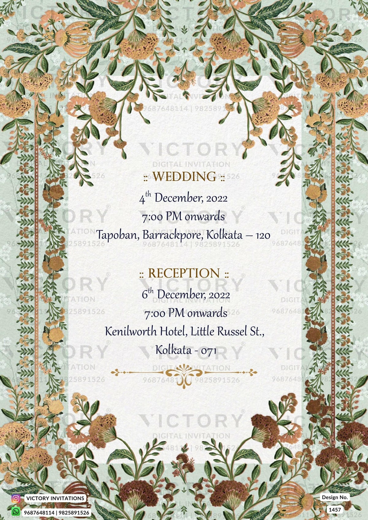 Wedding ceremony invitation card of hindu west bengal bengali family in English language with floral theme design 1457